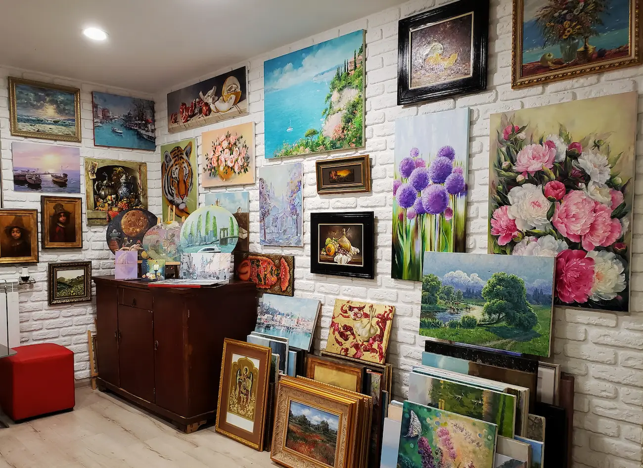 В галереї Ви зможете не тільки отримати естетичну насолоду від красивого живопису, але й придбати оригінальні картини для Вашого затишного помешкання, робочого простору або підібрати подарунок на будь-яку подію. Ми співпрацюємо з талановитими майстрами зі всієї України, які творять у різних стилях та напрямках живопису.
