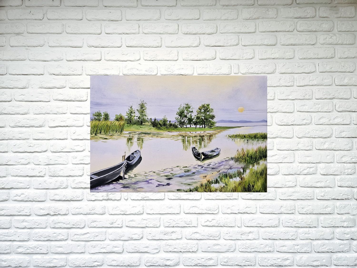 Спокійний вечірній пейзаж з човнами ідеально підійде на подарунок або стране прикрасою для класичного інтер’ру.