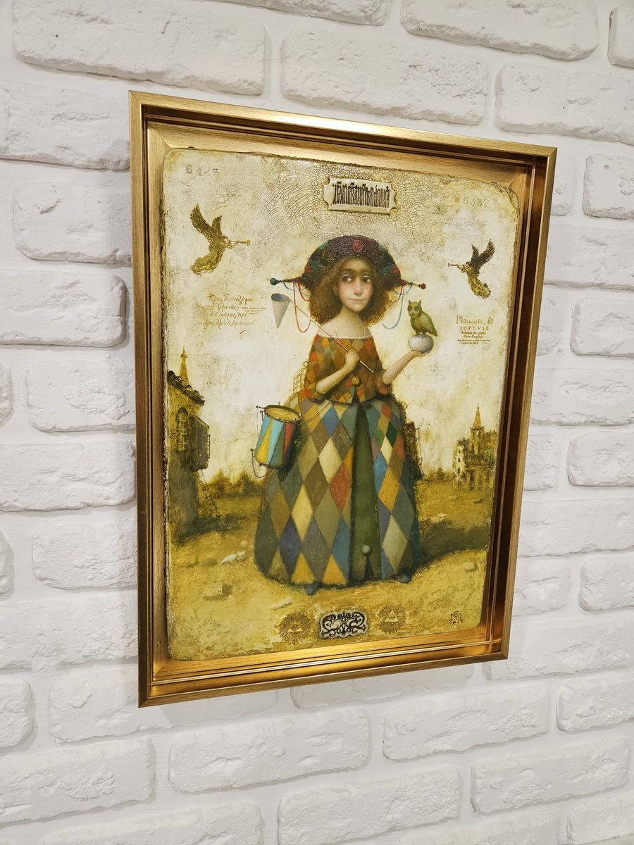 Левкас на деревині, оформлений у раму.